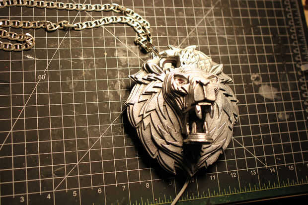 el caso de cabeza de León se inspiró en aldabas que vi en muchas viejas puertas chino clásico. También encontré que es una semejanza a la insignia de Nike Lebron León temprana.