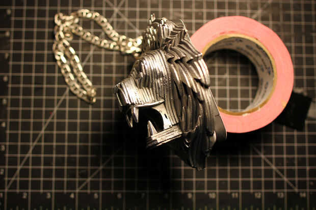 Después de unas horas romper la cáscara con un martillo. Afile el canal vierte y arena ligeramente la superficie de la cáscara cerámica capturado la textura de la foamsheet que le da un forjado como superficie... Solía Mag & Polaco de aluminio por las madres polaco. Coloque una cadena para colgar, luego su hecho!