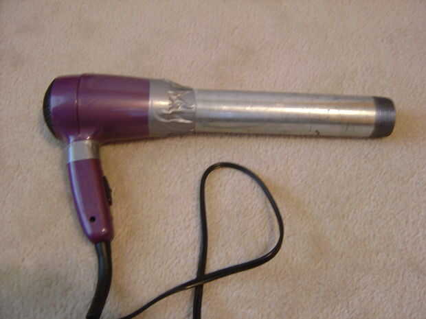 Para hacer su ventilador, toma la cinta del conducto y conecte el secador de pelo a un extremo de la entrerrosca de tubo de hierro. Convertirlo en y compruebe si hay fugas.