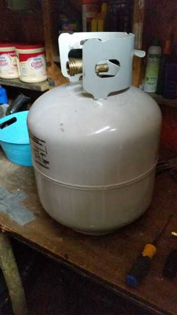 El proyecto comenzado cuando un amigo me dio un tanque de propano vacía pero nueva y ya tuve un completo para mi barbacoa junto con un repuesto que se llenará en verano.