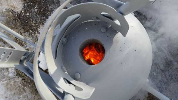 Pronto la fundición estaba realmente caliente y arda, bombeaba el aire bien y no había ningún humo.