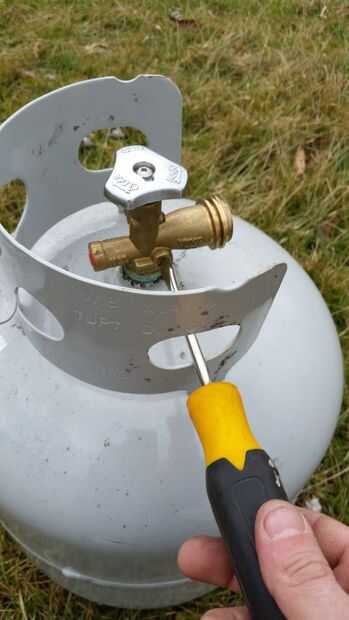 El siguiente paso es quitar el tornillo de presión que en este modelo se encuentra en el lado de la sección de cobre amarillo. Lo hice con un destornillador pequeño y debido a la condición decente del tanque era fácil simplemente destornillar.