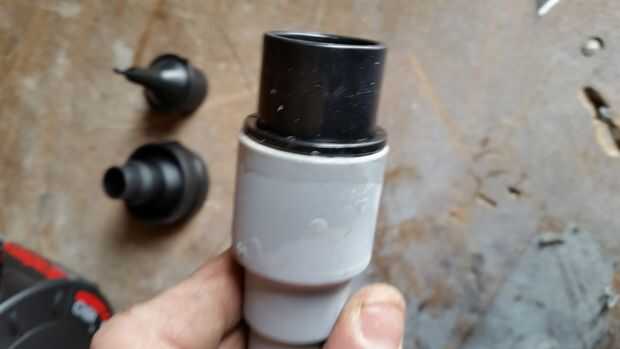 Entonces pegué lo en el tubo de modo que ahora sólo empuja hacia el ventilador y es uno menos que puede perderse cuando desmonte la sección del tubo.