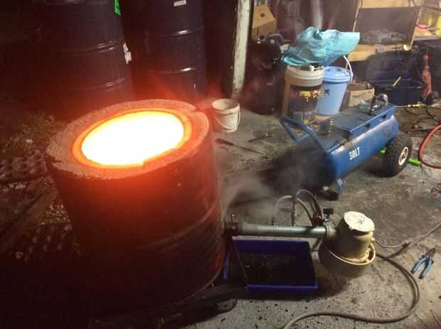 No sé exactamente a qué temperatura estaba logrando pero pude (sólo) fundir bronce, mi mejor conjetura sería en las cercanías de 1100 grados C.