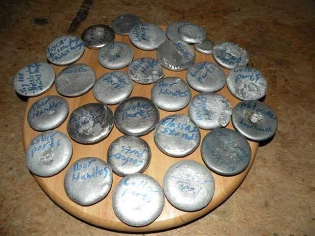 Cuando miramos podemos ver aluminio por todo el lugar moldeado en diferentes objetos que usamos diariamente. Tomé unas cuantas fotos de las piezas de aluminio he utilizado en mi fundición y había convertido en lingotes de aluminio que se utilizará otra vez cuando voy a empezar mi bastidor de arena. También separar las aleaciones de aluminio y marcar en los lingotes que objeto era antes. En mis imágenes fundió una galleta de la tuerca piezas de la cerradura, cocina, manijas, manijas del grifo, las patas del trípode, piezas de la vespa (choped para caber el crisol), soportes de aluminio, coche del juguete, soporte de los vidrios, bisagras de baño, botella de vino corcho y escalera piezas.