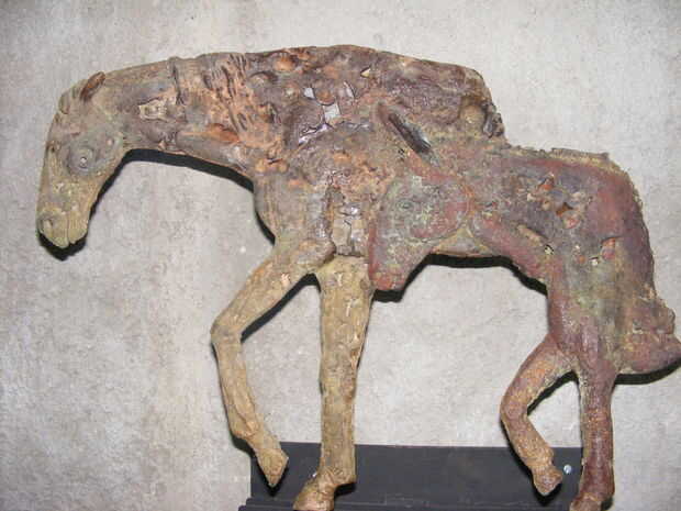 aquí es una escultura que hice hace unos años que combinado fundido y fabricados de bronce. Fundición de bronce se puede hacer en su patio trasero si tienes un soplador de hojas y un pequeño horno refractario. Bastidor de arena, en particular, es una