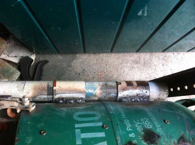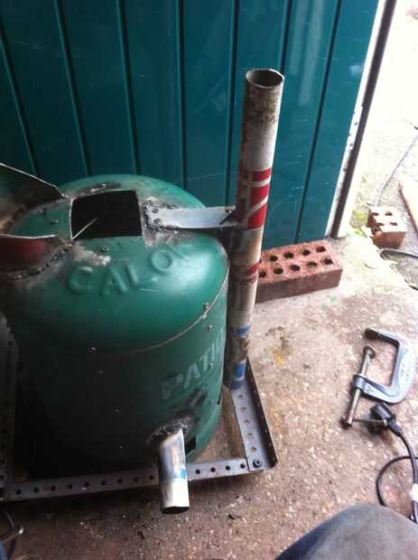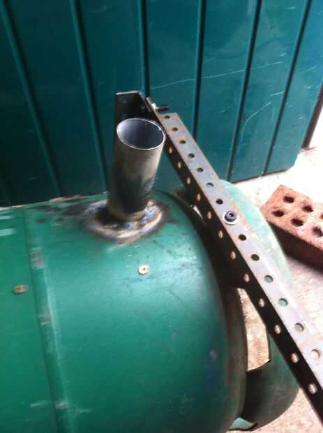 Soldadura de los soportes fue complicado de lo que la tubería que estaba usando estaba delgada pared pero logré piscina la soldadura entre el tubo y la botella de gas.