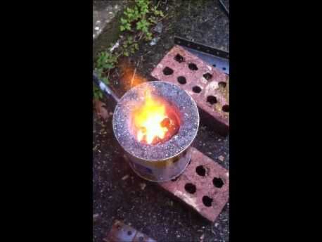 Aquí tenéis un vídeo de la prueba que hice, formada por la mezcla y en pegado a una lata grande (originalmente para leche de bebé, en los Estados Unidos es aproximadamente el mismo tamaño que una lata de café) así que básicamente hice un mini horno. Usar mi secador de pelo de novias para soplar aire en la entrada.