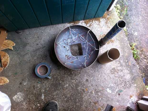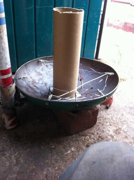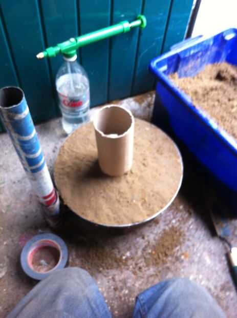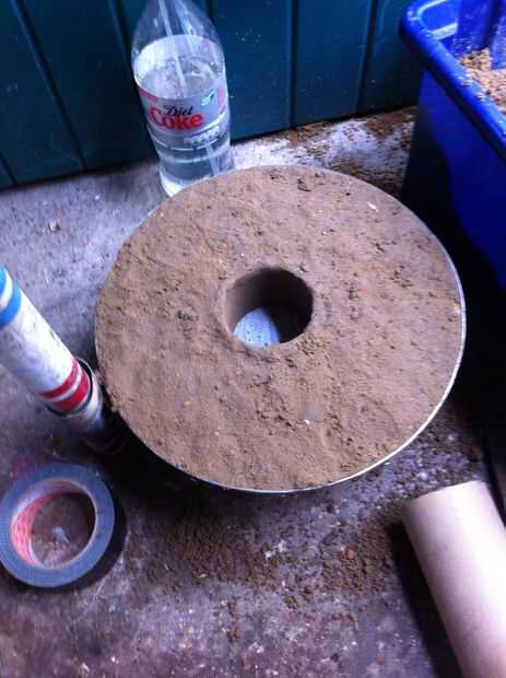 para la tapa puse cinta sobre el agujero y apareció un ladrillo debajo del orificio, utilizando un tubo postal como un molde de agujero que luego pegó tanto como pude en a la tapa. para retirar el tubo postal sólo lentamente gire y tire suavemente hacia arriba como lo hace.