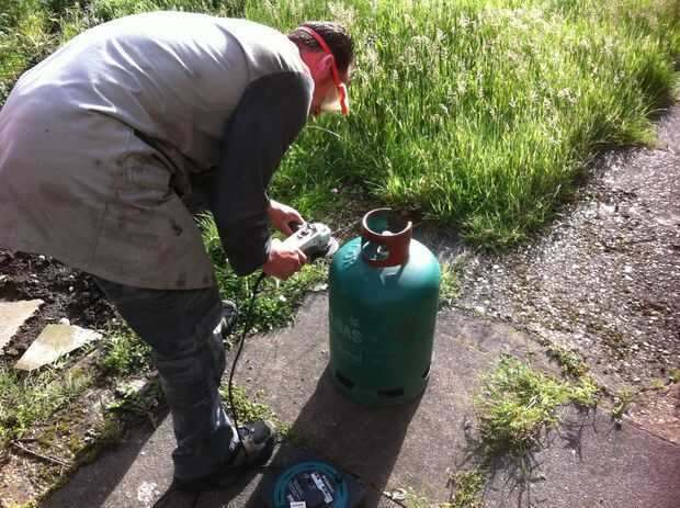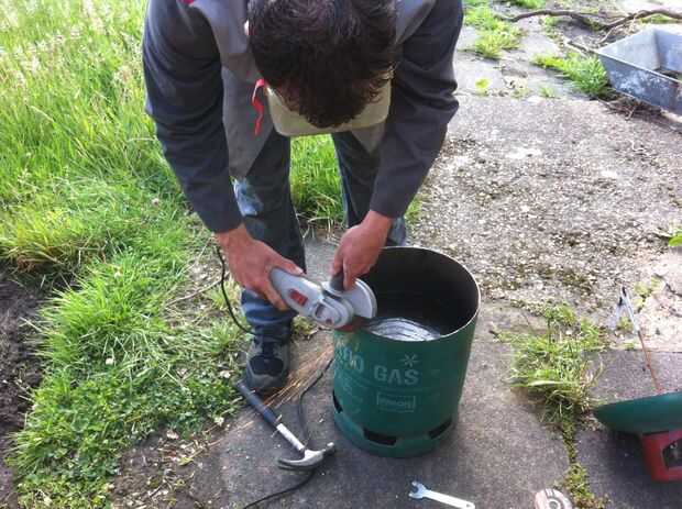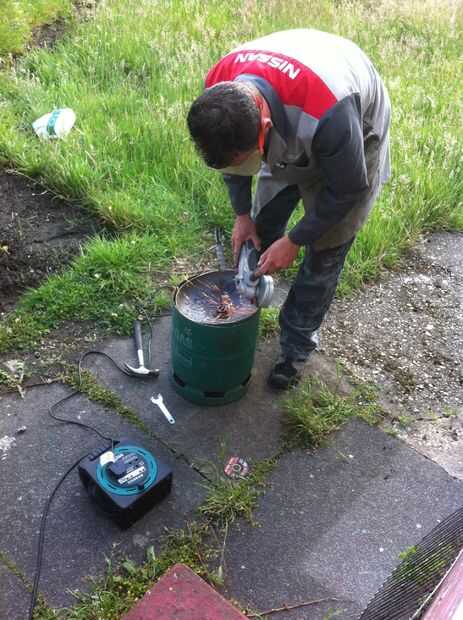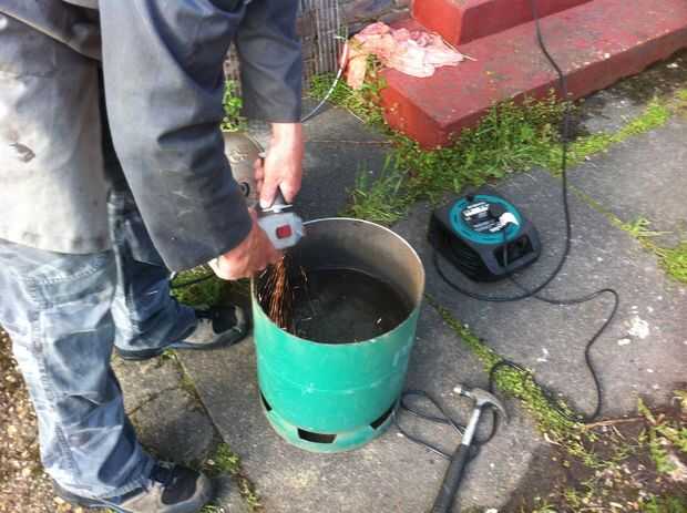 corte a lo largo de la línea marcada con la amoladora con un disco de corte, me las arreglé para mi hermano a hacer la mayor parte de la obra para mí mientras yo le cocinan cena ;-)