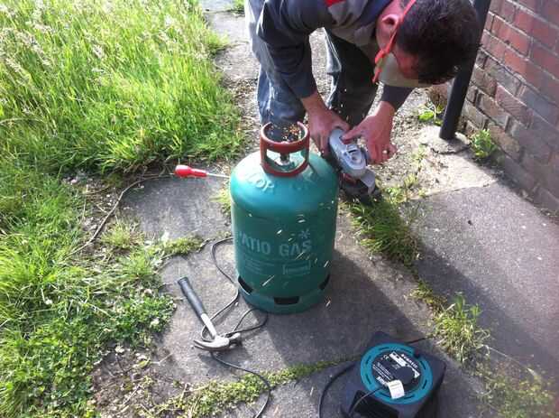 Si usted puede conseguir una llave alrededor de la válvula que se recomienda calentar la botella donde se conecta la válvula, selle estas válvulas con un líquido de soldadura que vuelve al líquido cuando se calienta para arriba, esto hará que sea un poco más fácil de bajar. También recomiendo usar una longitud de tubo de acero en su llave para darle extra apalancamiento.