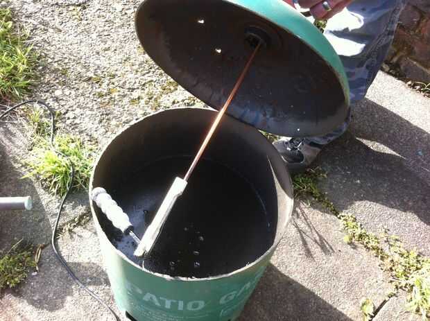 OK a la corte, usted necesita permitir suficiente en la parte superior de la botella para aproximadamente 2 pulgadas de material refractario, medido 5 y un medio pulgadas desde la parte superior del centro parecen y marcado con una pluma de marca.