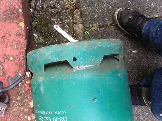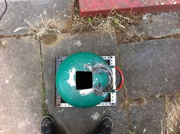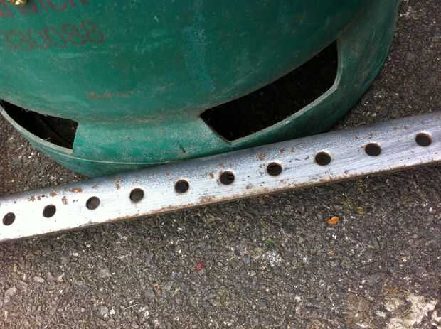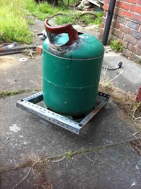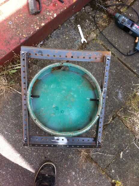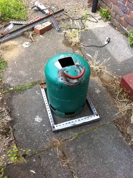 Luego perforar los agujeros en la base de la botella de gas y había atornillado el marco que tenía más de la estructura hacia el frente.