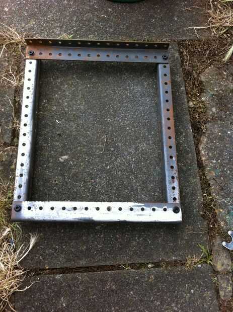 Empernada estos juntos para formar un marco cuadrado, la parte posterior del marco de la que montado boca abajo hay una pestaña para sujetar el poste que voy a usar para levantar la tapa.