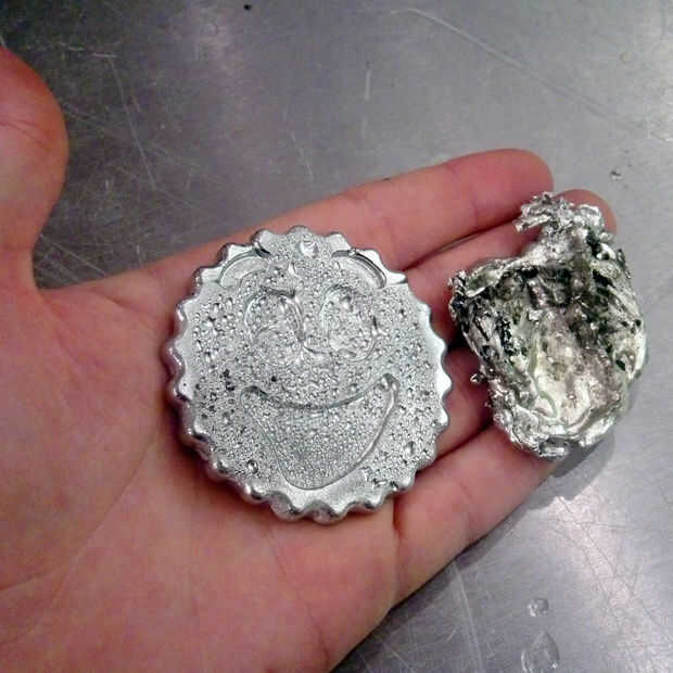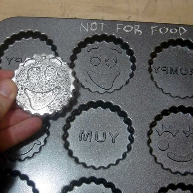 Verter metal fundido en el molde y dejar enfriar, y golpear suavemente la parte de atrás del molde para soltar el lingote de arrabio.