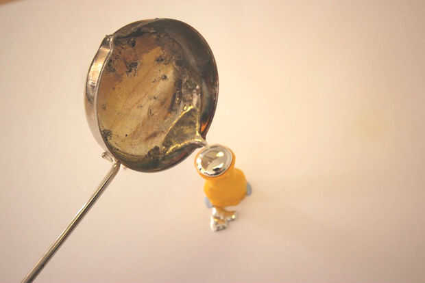 - Sugru se utiliza, esta vez para encajonar la copia de cera en una cáscara para fundición a alta temperatura.