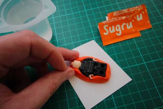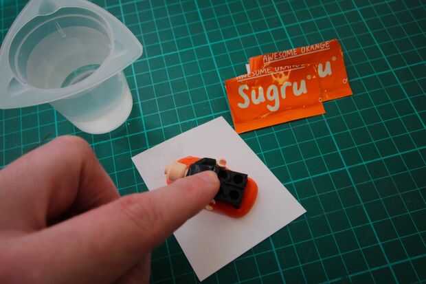 2. Insertar tu figura de Lego en el Sugru seco medio.