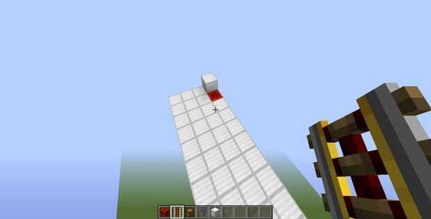 Iniciar con la colocación de un bloque (en este caso es hierro) en la parte superior derecha de la plataforma y entonces lugar un bloque de redstone justo enfrente de él.