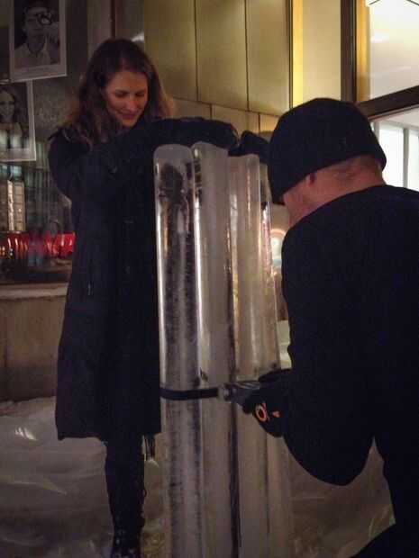 una esfera tiene 2/3 el volumen y la superficie de su cilindro de circunscribir. Es una relación hermosa, mágica, que quería mostrar. Este pastel de pi se hace con una esfera de pie seda francesa (corteza y todo) rellena dentro de un pastel cilíndric