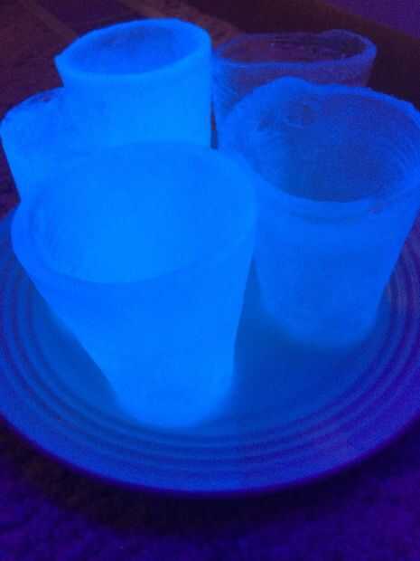 Hemos creado tazas de hielo de tónico que le brillan bajo luz negra.