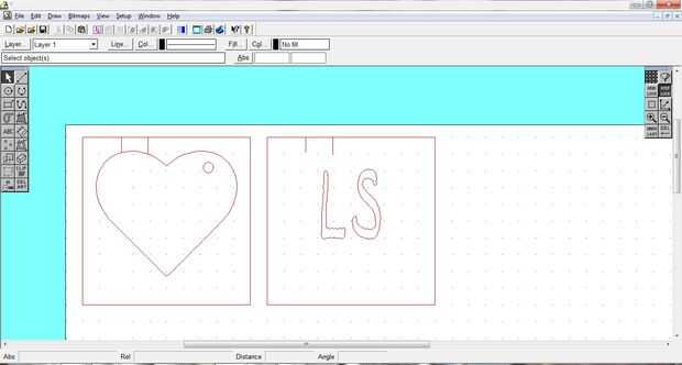 He utilizado la herramienta de texto en 2D diseño para poner las iniciales, y una vez más, he sacado el relleno y cambió las líneas al rojo.