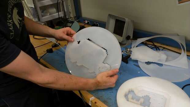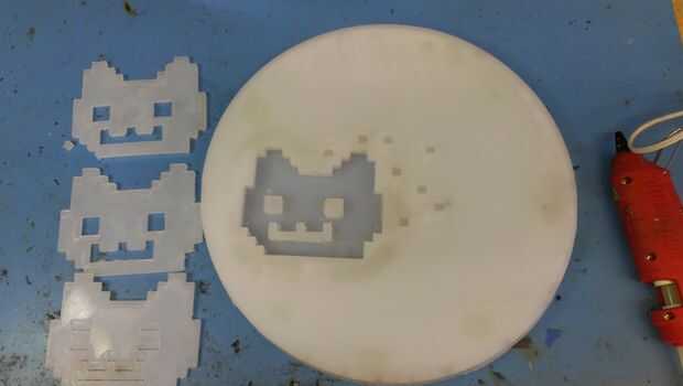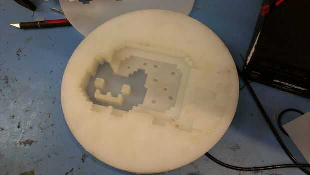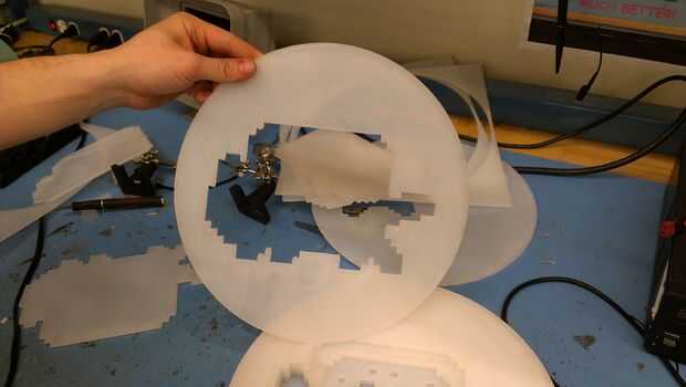Con los archivos < > un número de 12" hojas de plástico cuadrado podrían ser lasercut. Apilando estas hojas juntos, un modelo de tamaño completo podría volver a construido rápidamente y usado como un molde positivo. Para este molde, un peso ligero, bajo costo, bajo punto de fusión, se eligió lasercutttable plástico. Polietileno de baja densidad ajuste el proyecto de ley para estos requisitos, incluso tiene la textura y flexibilidad de pegamento caliente!