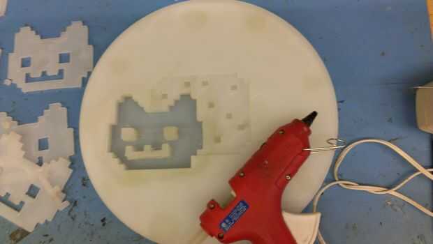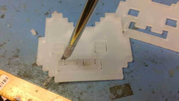 Polietileno de baja densidad pega bastante bien, con una pistola de pegamento caliente. Cada capa fue pegado en caliente, asegurando que los bordes y características tenían la parte de leones de la Unión. Pegando en los bordes, impidió que el molde de tener diferencias, que resultar en un pobre acabado final.