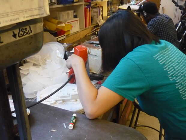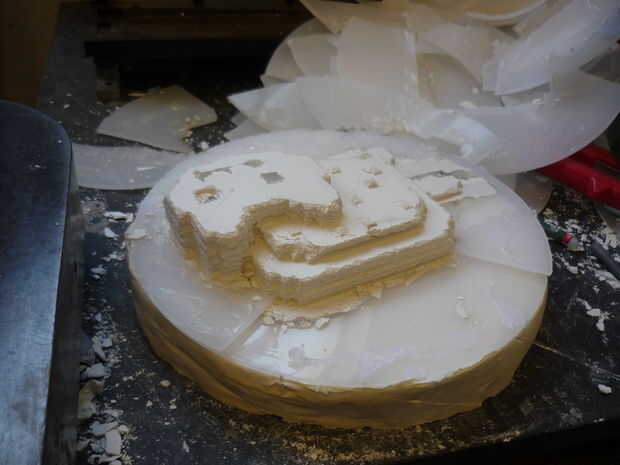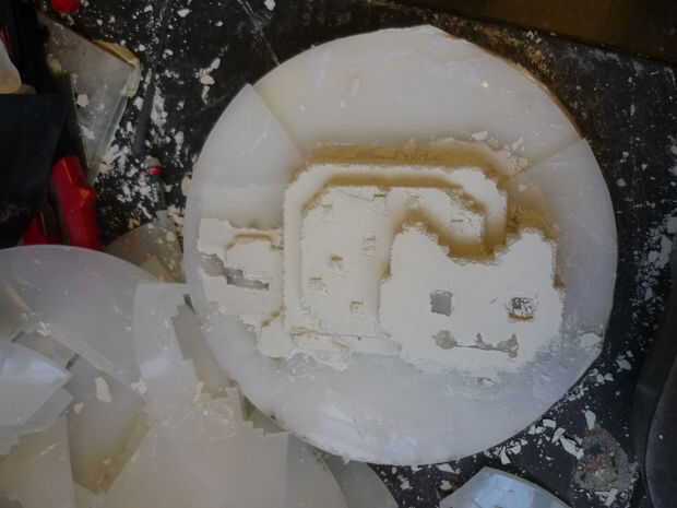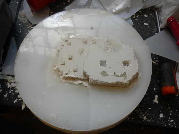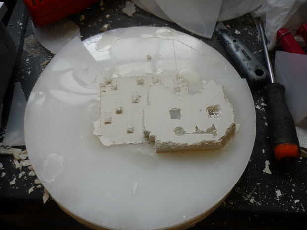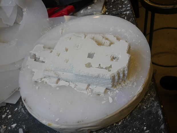 Por último, una vez que el LDPE se ha quitado de la escayola (que todavía contiene un poco de agua) y los lados sellados en las paredes de acero del resorte, es hora de hornear el molde!