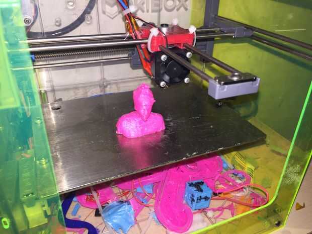 después de mucho ensayo y error aprendiendo a usar la impresora 3D de máquinas tipo A estoy imprimiendo mi primera pieza a dar como regalo. La pieza fue descargada thingiverse y es ayuda de cuchillo para ayudar al cortar objetos duros con un cuchillo
