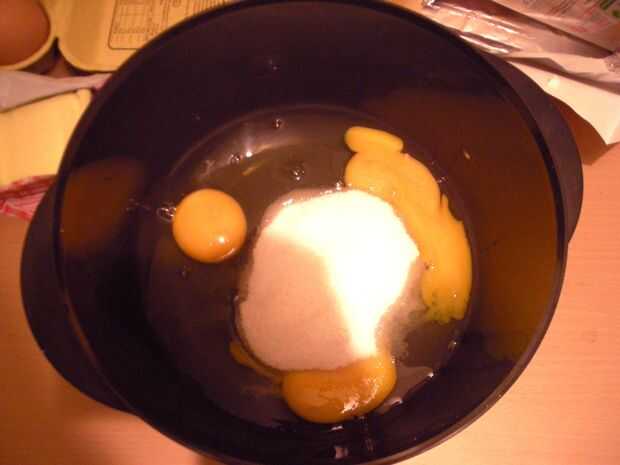 Romper 3 huevos en un bol, añadir el azúcar y bata.