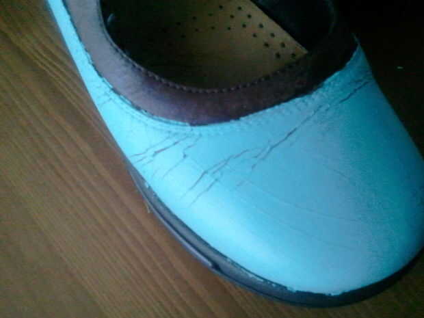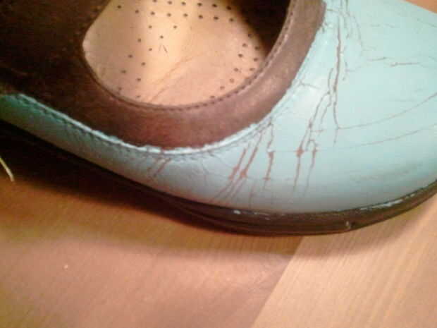 A pesar de comprobar que la cinta se adhiere firmemente y de manera uniforme, la pintura arrastran un poco. Anticipó que la pintura podría quebrarse como una llevaba el y estoy bien con el 'envejecimiento'. Si la pintura era aplicada sobre una parte diferente de la zapatilla, es decir en el talón o el dedo del pie, espero que se agrietaría menos.