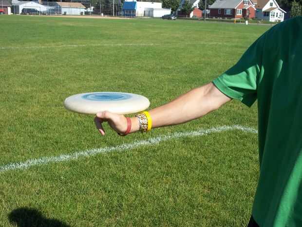 El tiro: Comience con el frizbee por su cadera. A continuación, gire su cuerpo lejos mientras comienzas a endereza el brazo. Mantenga el frizbee por encima de la muñeca. A continuación, parpadeará la muñeca. Verlo volar.