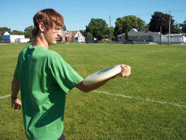 El tiro: Comience con el brazo por encima de la muñeca y detrás de la cadera. Gire su cuerpo mientras usted endereza su brazo. Gire el frizbee hacia usted y luego película de la muñeca. Verlo volar.