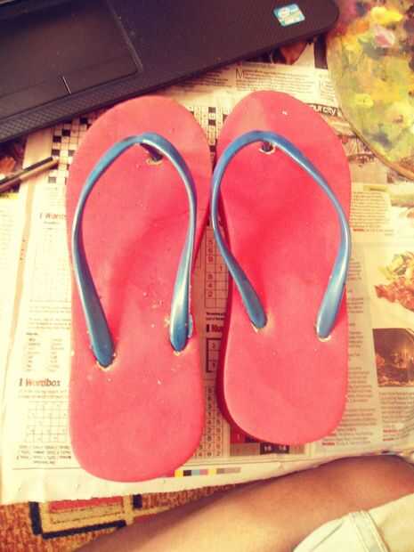 Funky ojotas con pintura de aceite. (2 / 8 paso)