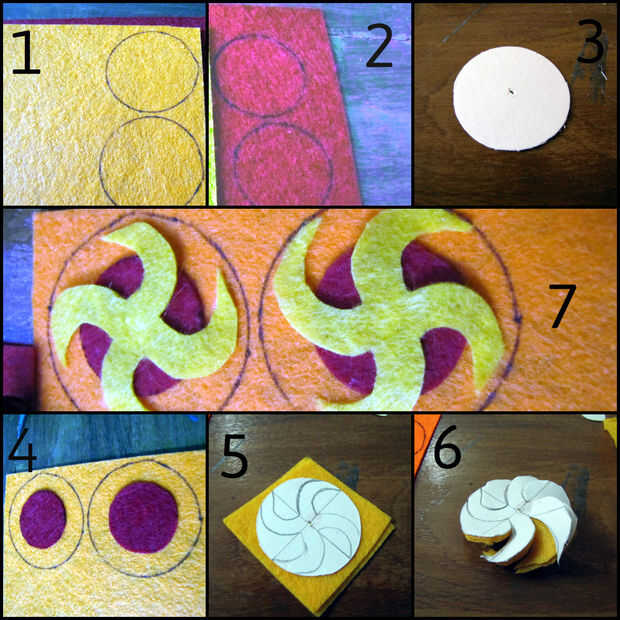 - No extraiga los círculos todavía de la naranja de fieltro. Deje que el pegamento seco por un tiempo.
