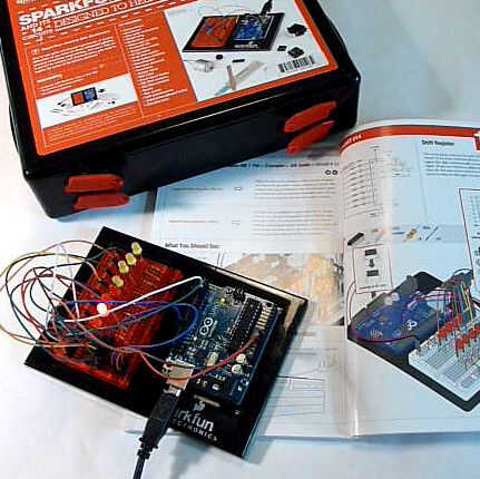 El escudo le da acceso para dispositivos de entrada como un potenciómetro, fotocélulas, pulsadores y una temperatura IC. El escudo también contiene salidas en forma de ocho LEDs estándar, un LED RGB y un altavoz piezoeléctrico. No hay manera de gancho mal o tiene el Patillaje del conflicto.