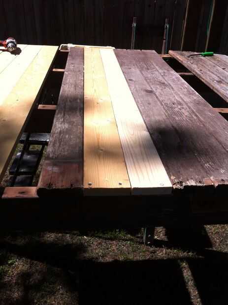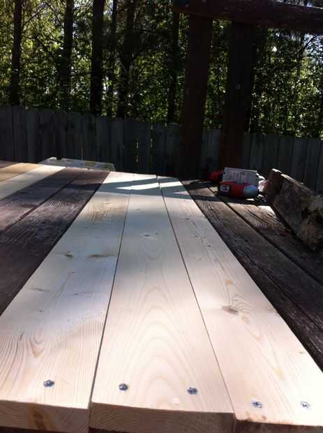 Por lo tanto, lo que ves en la foto de arriba son un cluster de 3 1 x 4 [que uno en el centro no es tan desalineado como aparece en la foto)... cada uno mide 56 pulgadas de largo. Como obviamente intentado rescatar algunas de las antiguas juntas (para ahorrar dinero), realmente tuve que copiar un poquito a lo largo de la longitud de algunos de los consejos (ver comentario abajo).