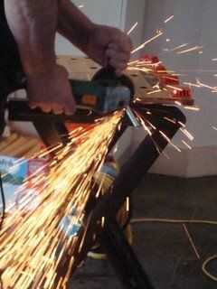 Aquí está una foto de mi padre cortar el metal. Como puedes ver hay un montón de chispas, así que asegúrate de que llevas el engranaje protector.