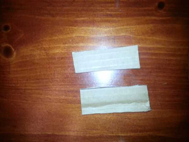 Cortar dos piezas rectangulares pequeñas de cartón (aprox. 1 "x 3")