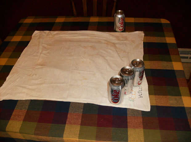 Lo que está queriendo hacer es ponerlos un poco aparte y poner en una lata tercera hace justo. Nota: Si haces sólo dos latas y botellas; sería mejor establecer dos latas juntas (centradas en donde la media es en la foto abajo) y luego los vuelco alejados uno del otro. Pero a mi me funciono de esta manera cuando yo estaba tratando con cuatro latas.