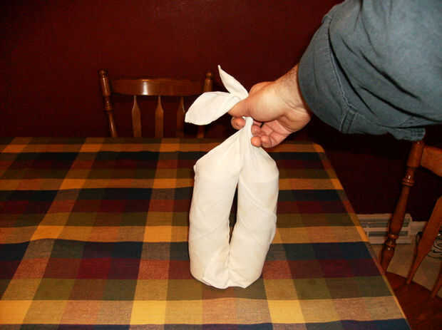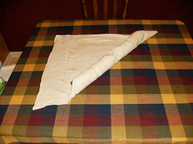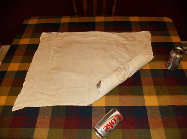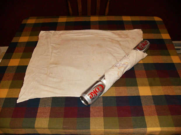 Cuando usted ha rodado para arriba recoger cuidadosamente las dos esquinas y doblar la tela en el medio para que usted disfrute un delicioso Diet Coke 'U'.