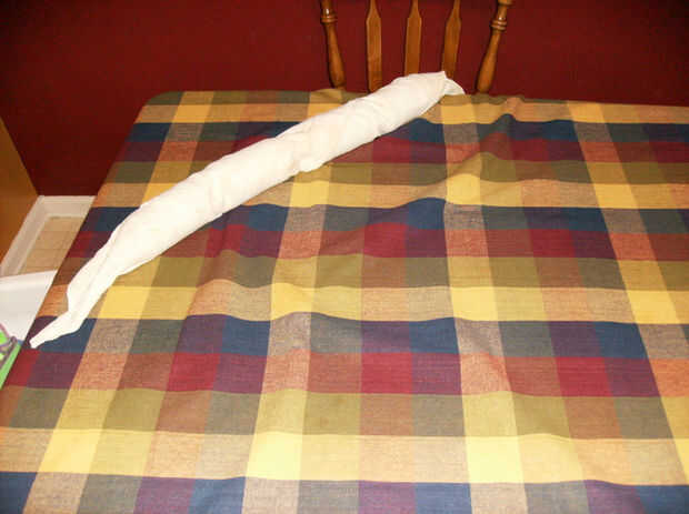 Ahora el resto de latas y botellas (si cualquier) junto a los de la tela y comienza rodando diagonalmente.