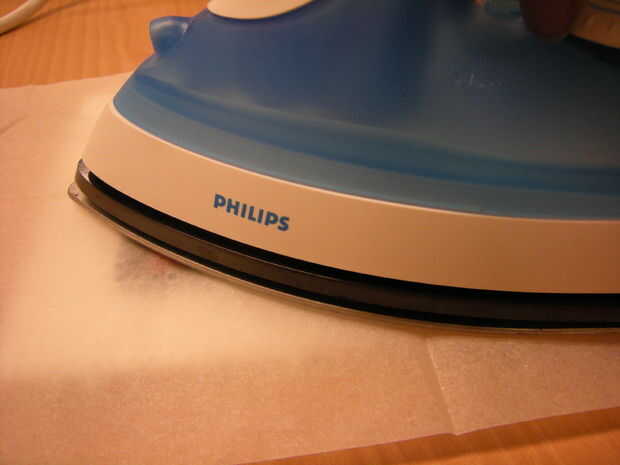 Una vez que los granos, cubrir con papel de planchado y plancha para fusionarlos juntos. Los granos derriten lo suficiente para unir firmemente. Espere hasta que los granos se hayan enfriado antes de retirar el papel.