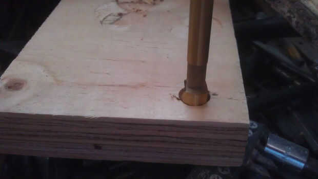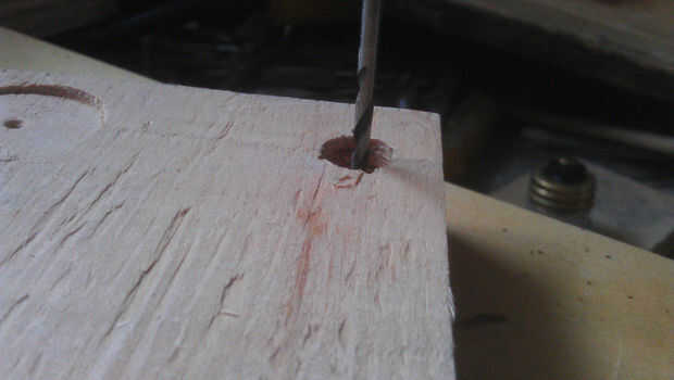Usando la broca Forstner, perfore un agujero lo suficientemente profundo dentro del gabinete para ocultar la base negra.