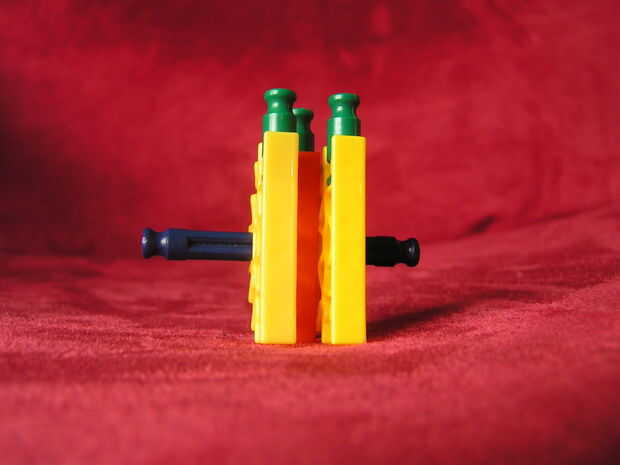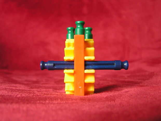 esta pistola es fácil de construir. Es poderosa por su tamaño pequeño. Este es mi primer instructable. Esta pistola dispara cerca de 25 pies.Paso 1: Piezas necesarias Fácil de construir. 7 conectores rojo. Gris 6. 4 amarillo. 1 naranja. 4 barras de a