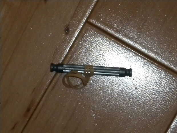 10. hacer estas piezas. Constituyen las guías de empujador y munición para la revista. El conector gris roto debe ser una toma de bola. Simplemente no tenía ninguna.