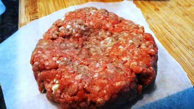 A continuación formar las hamburguesas fastidiando la carne y los planos. Las hamburguesas deben ser un poco más grandes entonces los rollos.