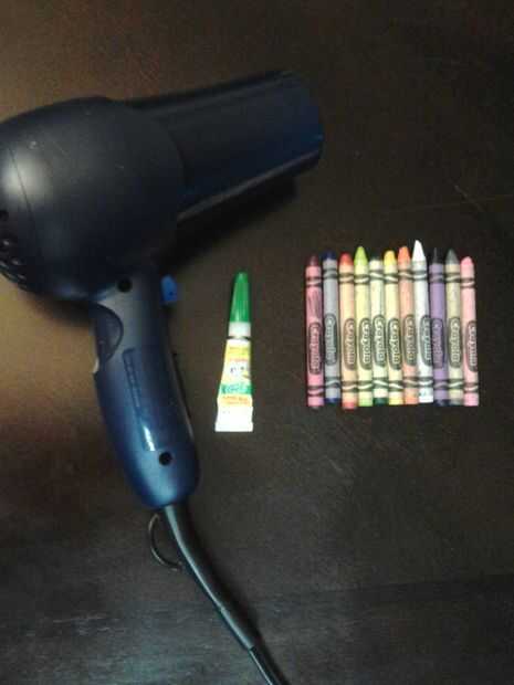 Encienda el pelo secador en calor y puesta por los lápices de colores, tardará un tiempo para derretir pero totalmente vale la pena esperar porque es cool :D