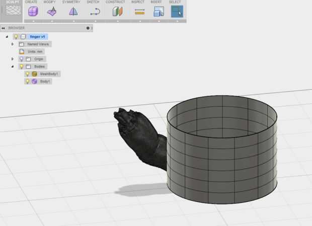 Fusion360: Ajuste de una forma de T-splines 3D malla (2 / 3 paso)