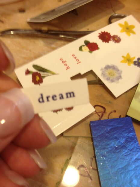 Corte la decoración deseada (yo escogí el sueño de palabras y una flor roja).